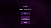 Initial release contains the following difficulties: Easy, Medium and Hard. And the base sudoku game features. Next happening changes: Settings menu with controllable window size and fullscreen mode (...